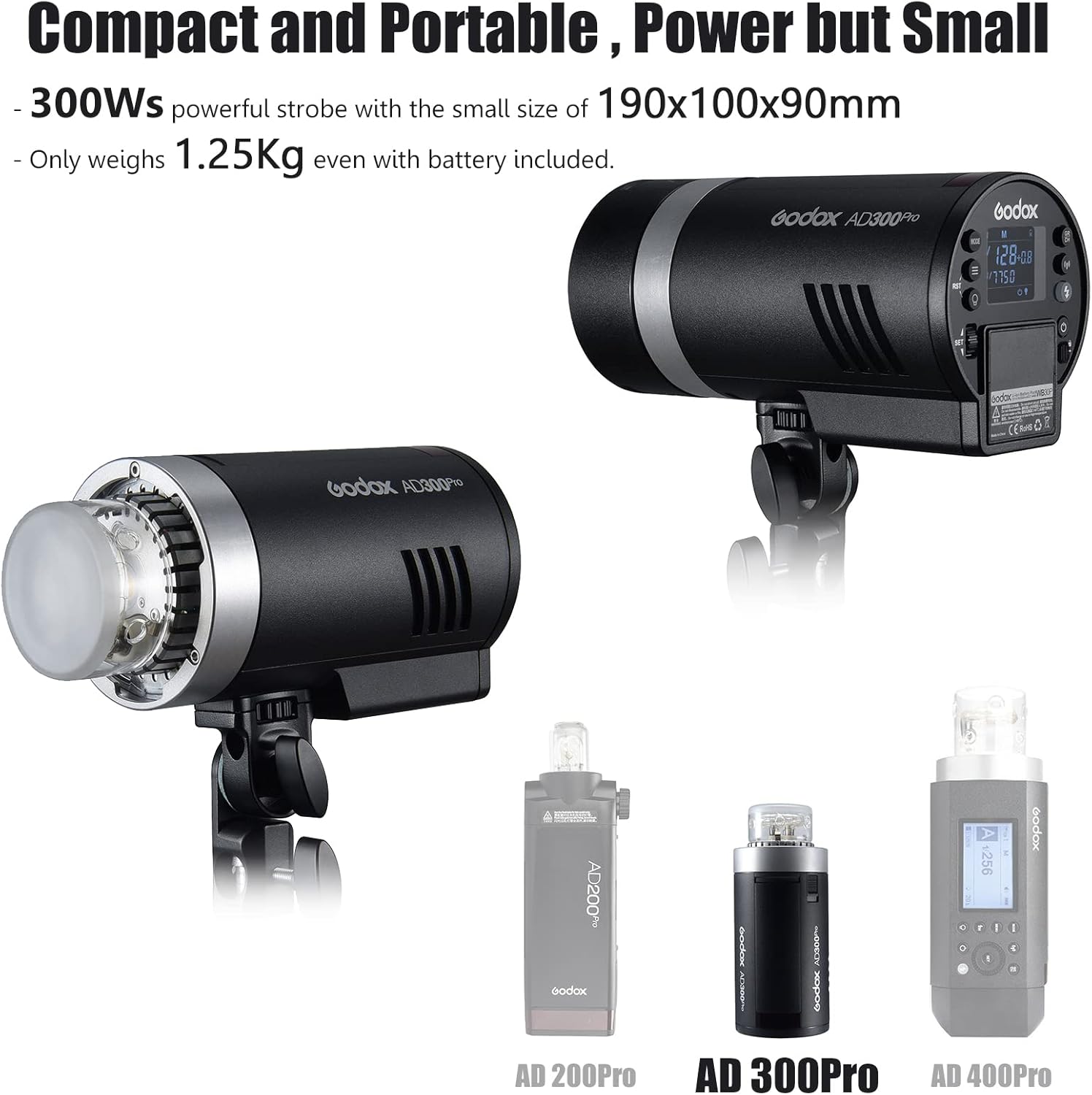 GODOX AD300Pro Outdoor Flash Strobe Monolight, 300Ws 2.4G TTL HSS 1/8000s Portable Flash Speedlight with Bi-Color Modeling Lamp and Recharagable Lithium Battery for Photography Outdoor Shooting