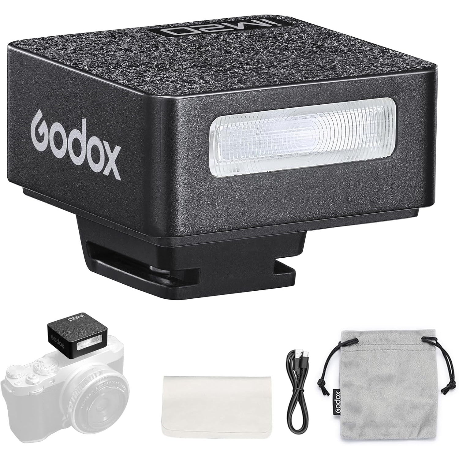 Flash de câmera Godox iM20, carregamento USB C, bateria integrada com 5 níveis de potência de flash para Canon/Sony/Fujifilm/Nikon/Panasonic/Olympus, para câmeras com sapata de contato único