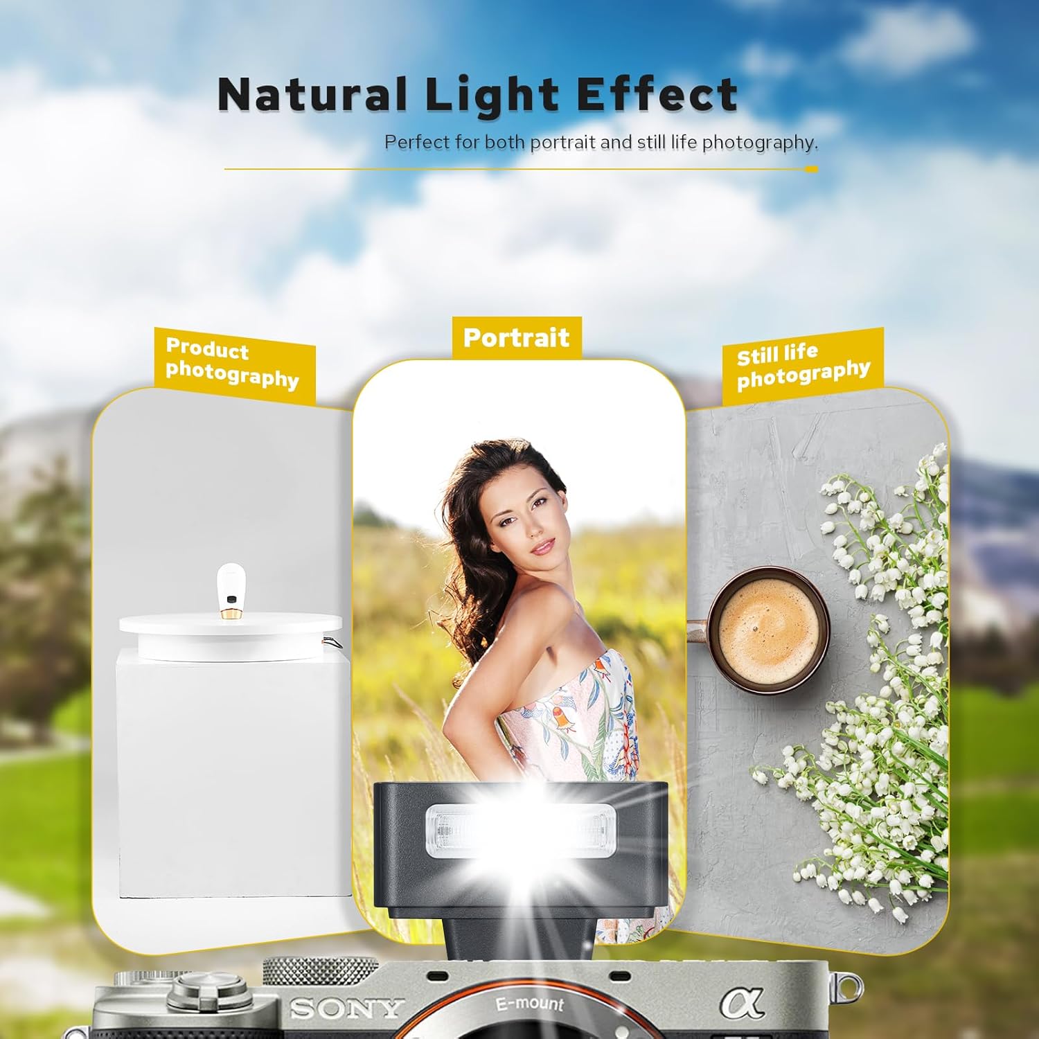 Observação: Este flash NÃO é compatível com Sony ZV-1F, A9III, A99, A77 e A350. Este flash NÃO é compatível com Canon EOS Rebel SL3, 250D, T7, 1500D, 2000D, T100, 3000D, 4000D e 200DII. Este flash NÃO é compatível com Fujifilm X-A3, X100F e X100T.