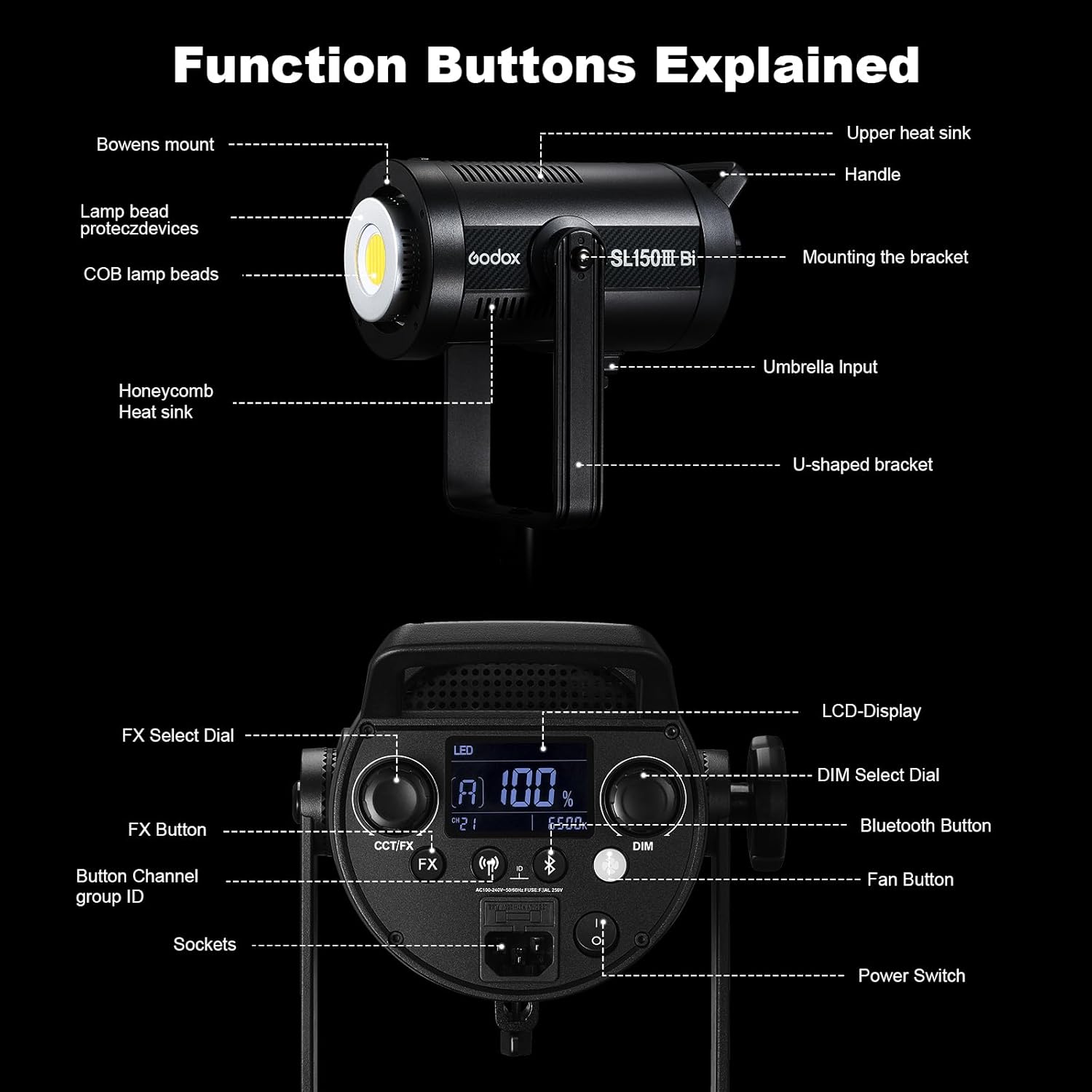 - 【Saída aprimorada】Com o refletor incluído, o SL150Il e o SL200ll produzem incríveis 58.000 e 74.000 Lux a 1 metro, criando uma luz brilhante impressionante. Com escurecimento de 100% a 0%, você pode obter flexibilidade de iluminação em diferentes cenas.