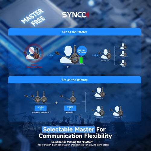 - [Sistema de fone de ouvido de intercomunicação sem fio Full Duplex de 2,4 GHz] O SYNCO XTALK X1 pode ser combinado com a série Synco Xtalk. De acordo com o número de pessoas necessárias, você pode adquirir um conjunto adicional de SYNCO XTALK X1 ou X2 e, em seguida, emparelhá-los manualmente para formar sua própria equipe de filmagem.
